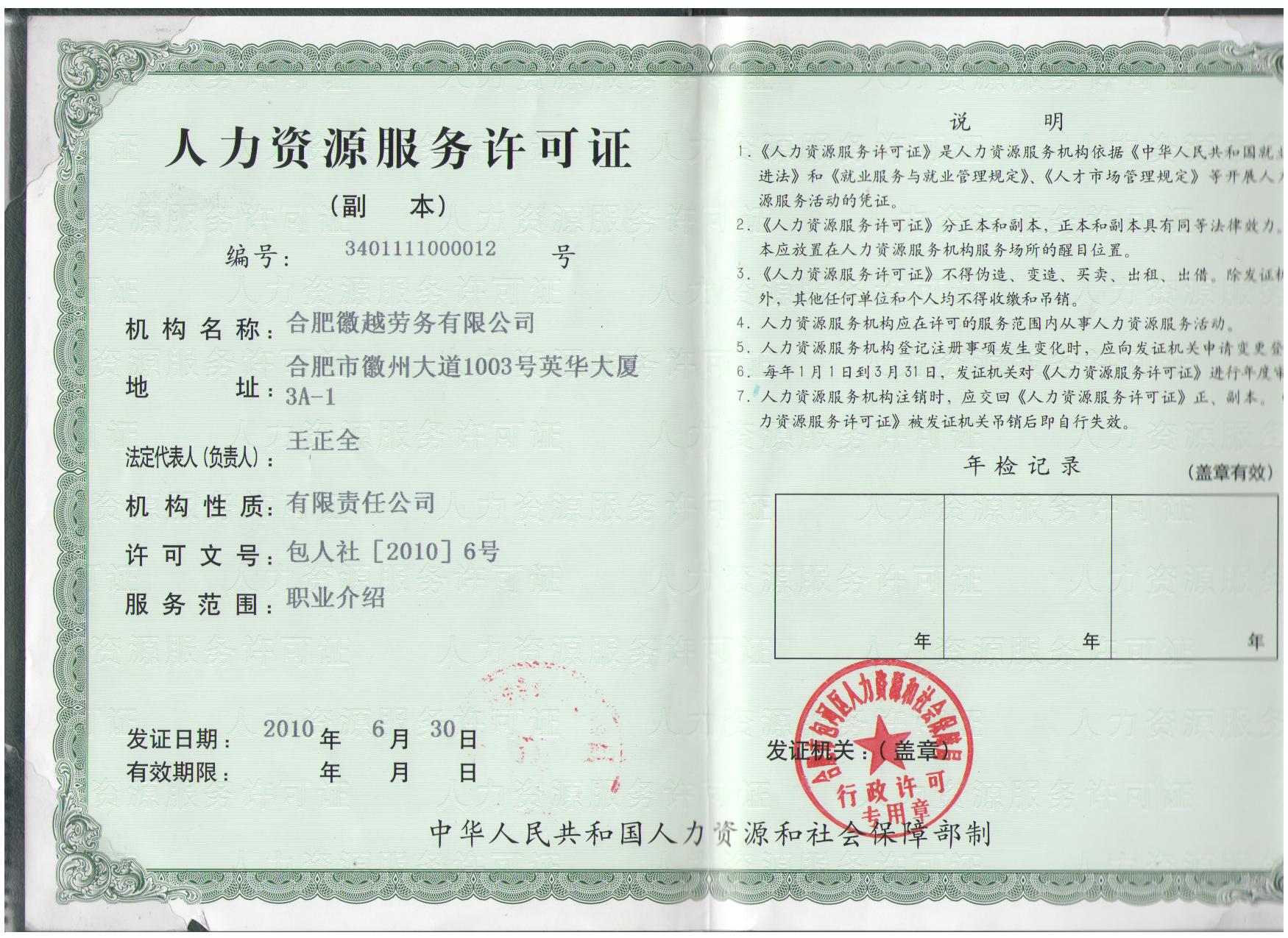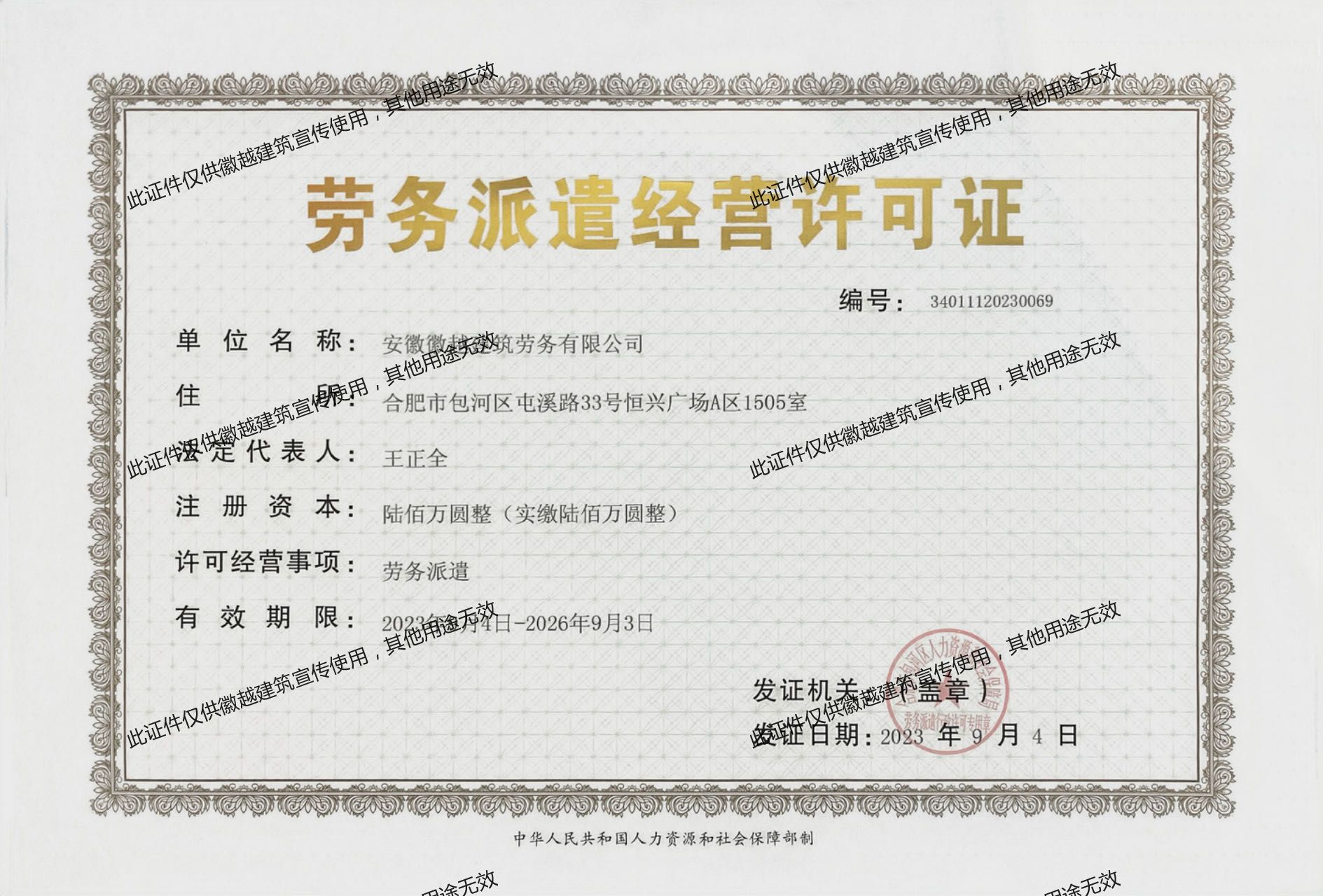 徽越公司自2008年中建總公司及多家世界500強企業(yè)授權招工資格以來,在同行業(yè)知名度信譽 度較高。徽越公司是安徽省一家經(jīng)過合肥市工商行政管理局(安徽省工商行政管理局備案審核)、合肥市勞動和社會保障局及合肥市建設委員會(安徽省建設廳資質審批)審核批準成立的正規(guī)合法的且具有豐富建筑勞務輸出和項目施工管理經(jīng)驗的信譽良好的勞務派遣和勞務分包...>>查看詳情